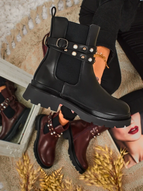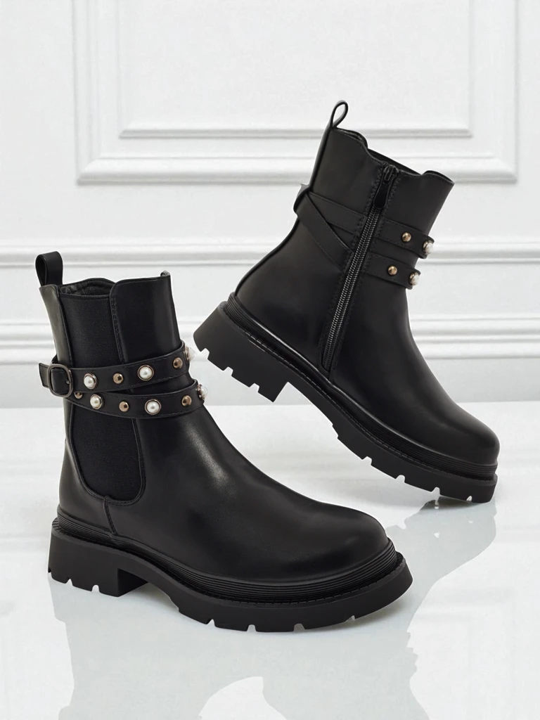Tendințe: Combinația dintre talpa masivă, funcțională și perlele delicate se încadrează în tendința actuală de a combina elemente utilitare cu accesorii feminine. Botinele tip Chelsea sunt încă o alegere la modă de sezon, în timp ce detaliile decorative le conferă un caracter unic.