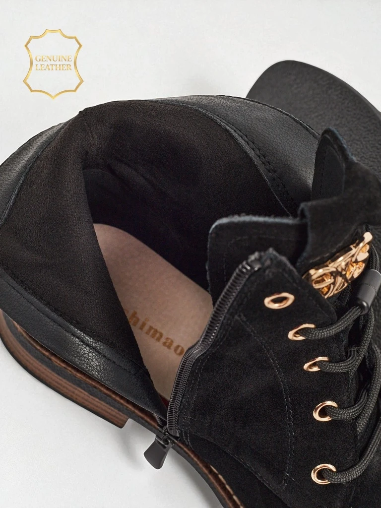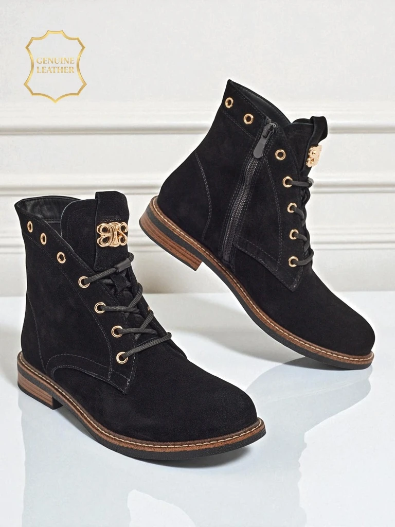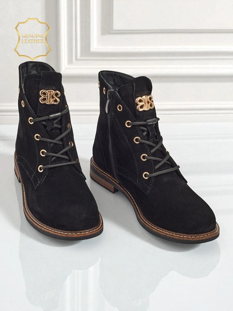 - Botine de damă cu șireturi, din piele naturală, Lunar Pace. Model cu talpă plată, confecționat din piele întoarsă și cu branț natural. Au șireturi și închidere cu fermoar. Stil și confort într-unul singur!