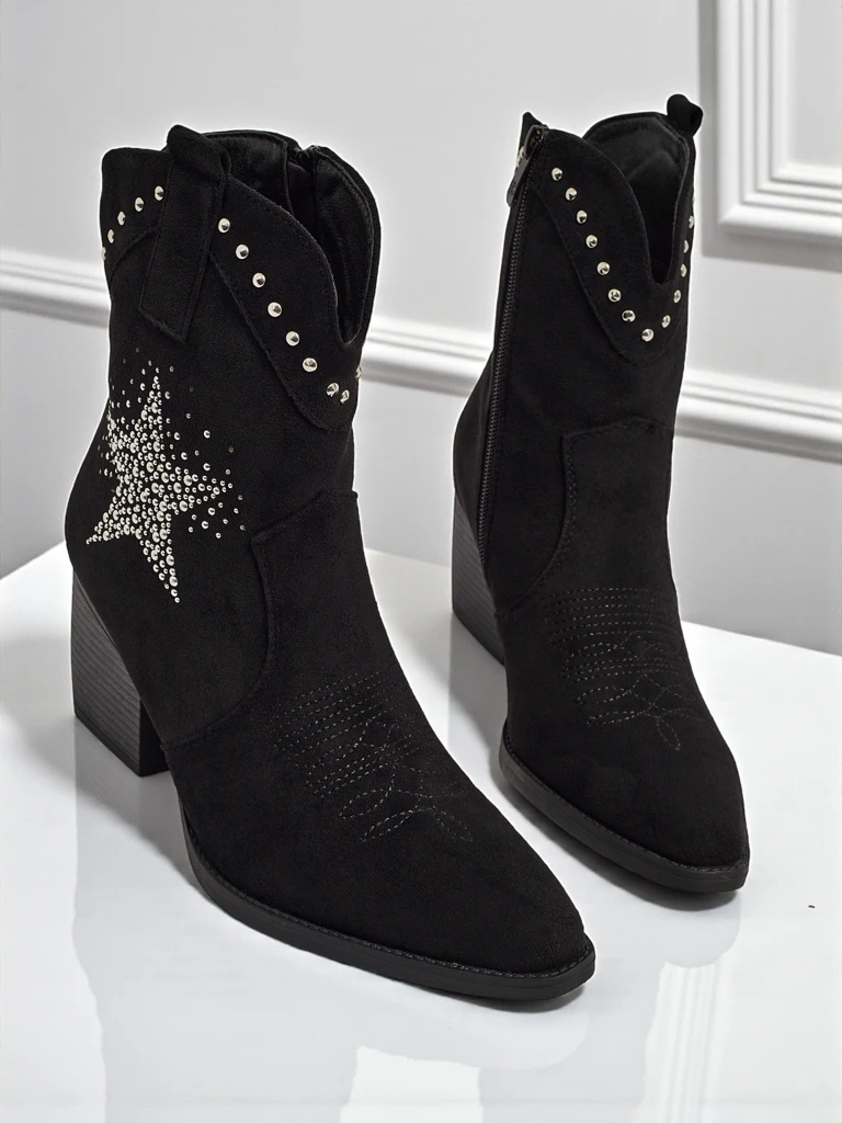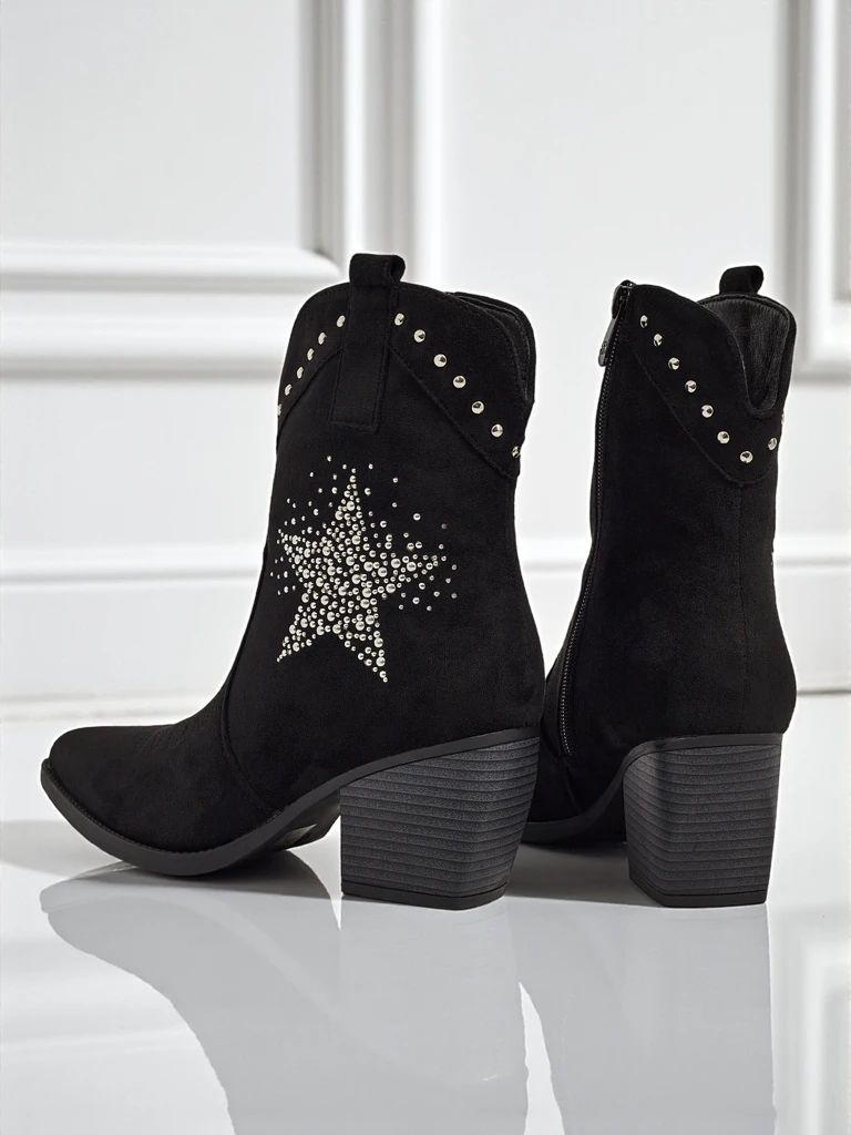 Botine cowboy de damă cu toc și stea decorativă cu zirconii FableStray