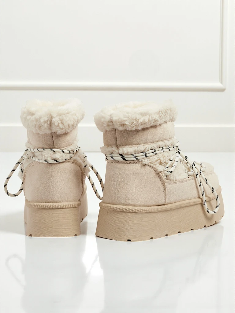 • Cizme de iarnă excelente pentru femei, tip snowboots, cu talpă groasă. Partea superioară este confecționată din piele ecologică de căprioară și material tip blană, interiorul este izolat cu blană artificială. Bază ideală pentru iarnă!