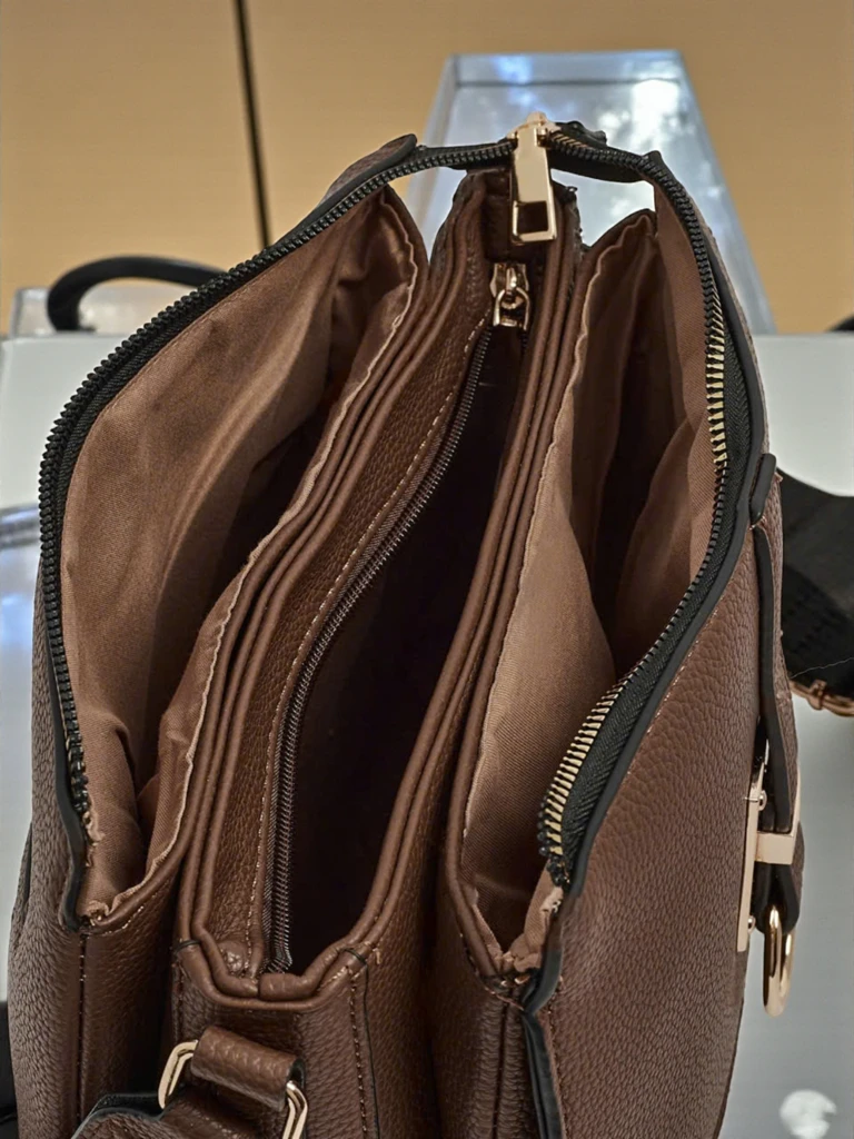 - Mała torebka wykonana z połączenia eko skóry. 3 komory, 4 kieszonki, zamek oraz regulowany pasek. Styl i funkcjonalność w perfekcyjnym wydaniu.