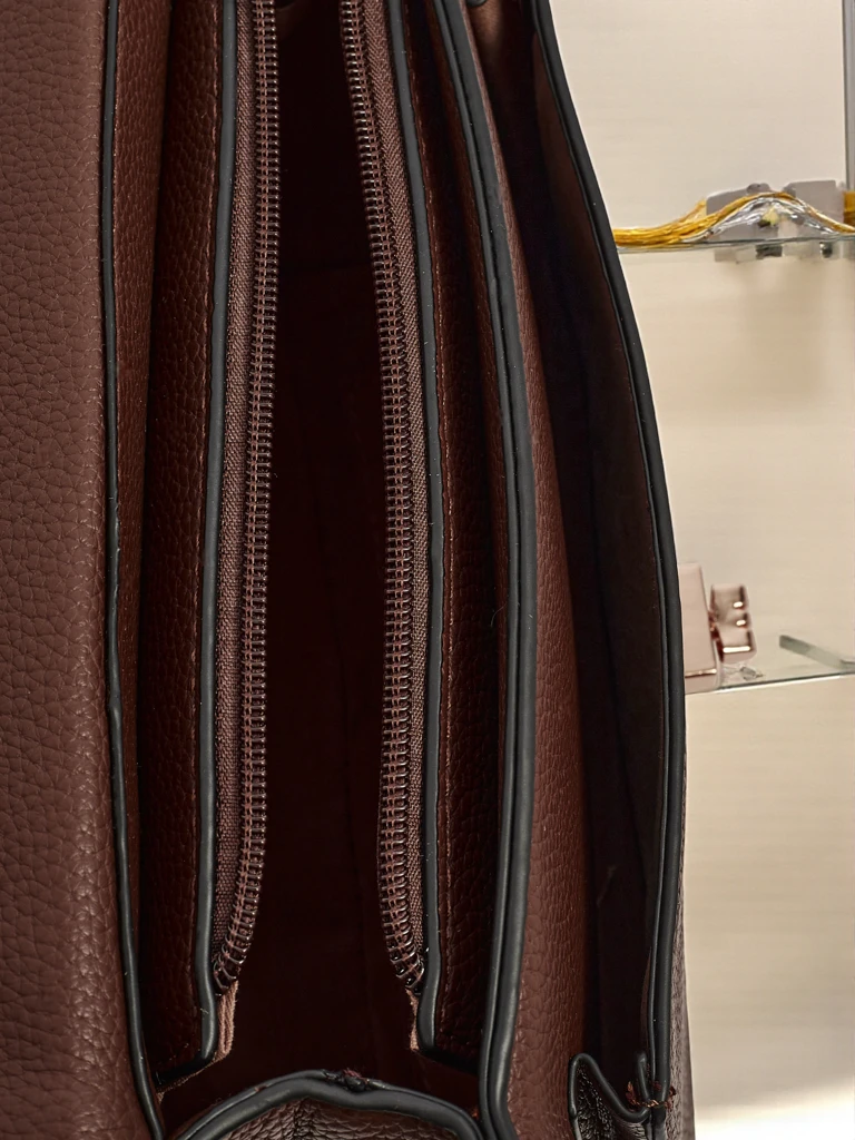 - O geantă mică realizată dintr-o combinație de piele ecologică și piele întoarsă ecologică. 1 compartiment, 3 buzunare, fermoar și curea reglabilă. Stil și funcționalitate într-o ediție perfectă.