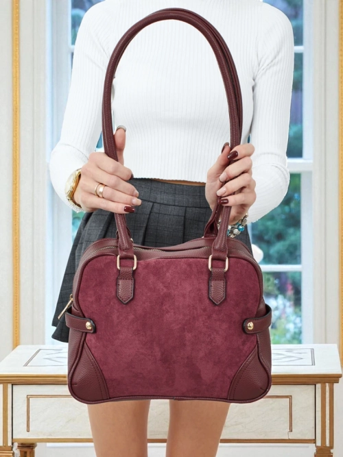 - Geantă de damă elegantă, realizată din piele eco-suede cu inserții din piele ecologică. Are 1 compartiment, 4 buzunare și o curea detașabilă și ajustabilă. Ideală pentru serviciu și utilizarea zilnică – încăpătoare, la modă și practică.