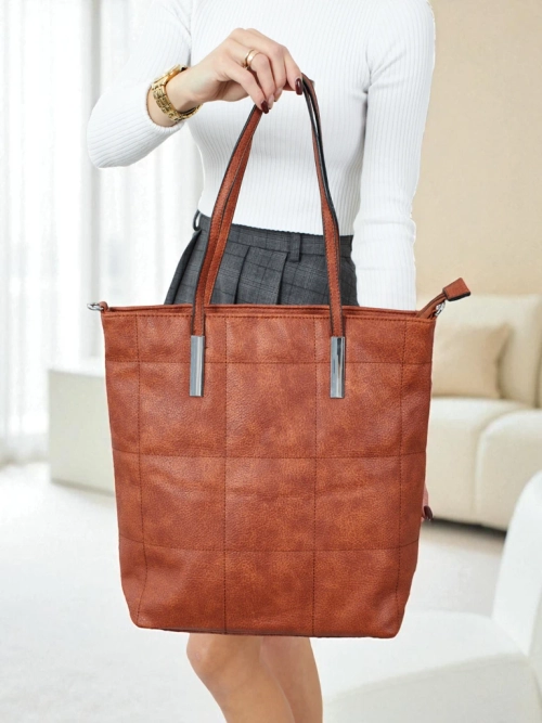 - Geantă de damă elegantă din piele ecologică. 1 compartiment cu separator, 5 buzunare, curea detașabilă și reglabilă și ștanțare decorativă. Ideală pentru muncă și pentru zi cu zi - încăpătoare, la modă și practică.