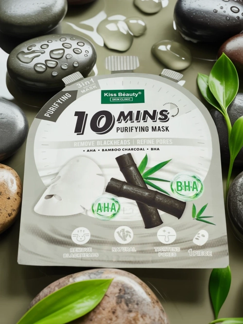 - Mască de față tip șervețel cu AHA, BHA și cărbune de bambus. Curăță porii, îndepărtează punctele negre și detoxifică pielea în 10 minute. Ideală pentru tenul gras și mixt.