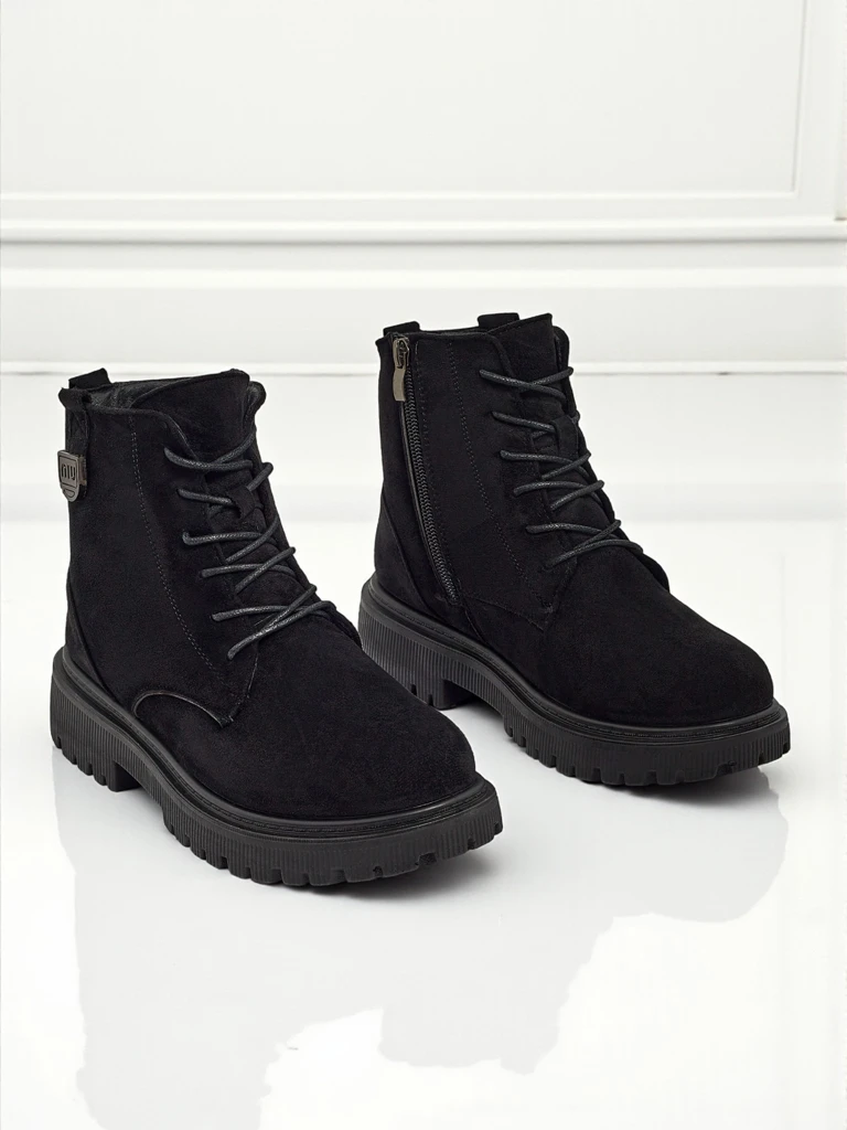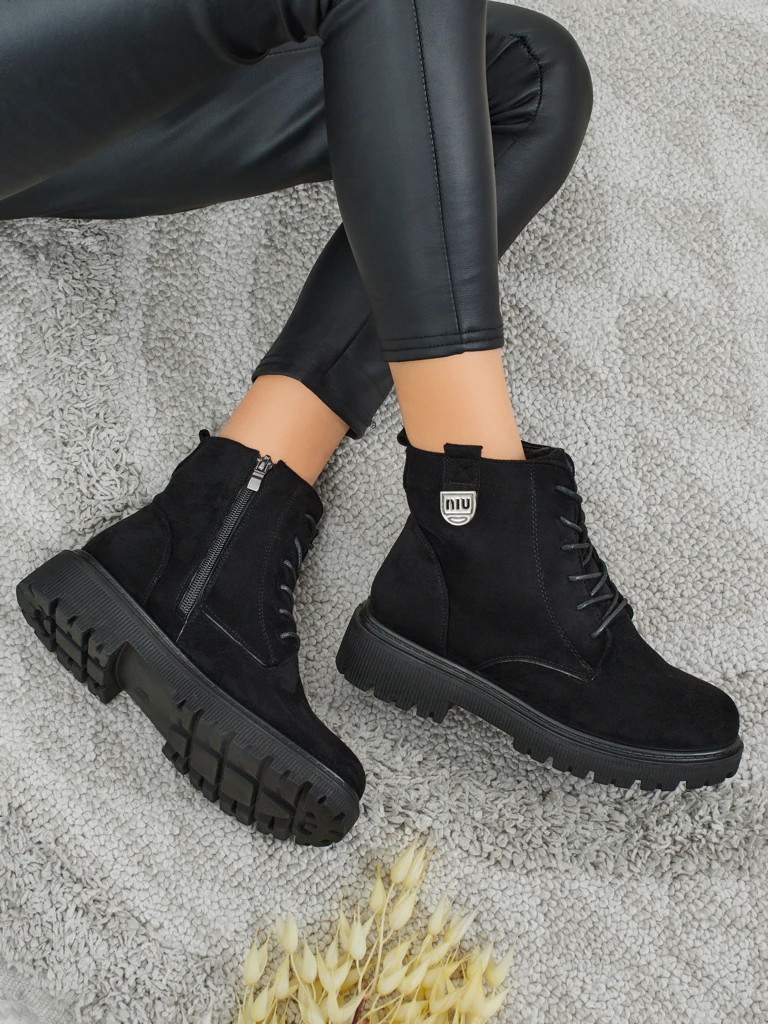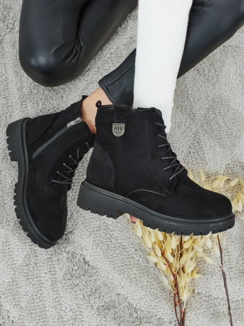 • Traperi de trekking pentru femei, cu fețe șireturate și fermoar lateral. Materialul este piele ecologică intoarsă. Interiorul pantofilor este izolat cu blană. Ideali pentru iarnă!