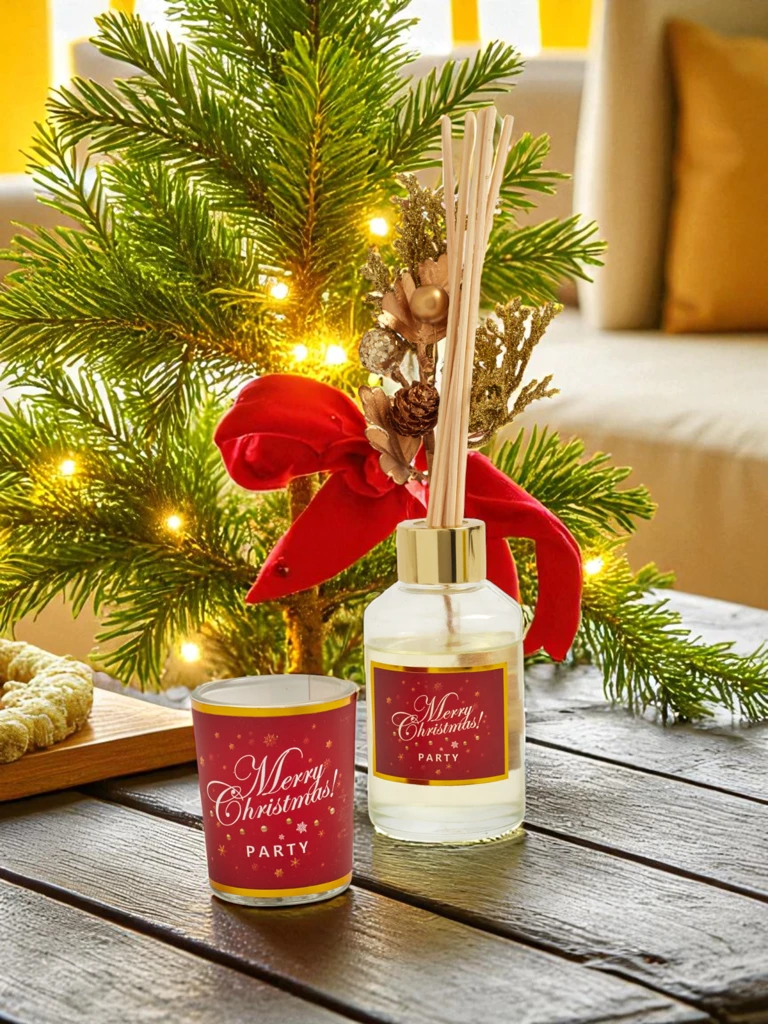 Setul: Bețișoare parfumate de Crăciun și lumânarea Merry Christmas