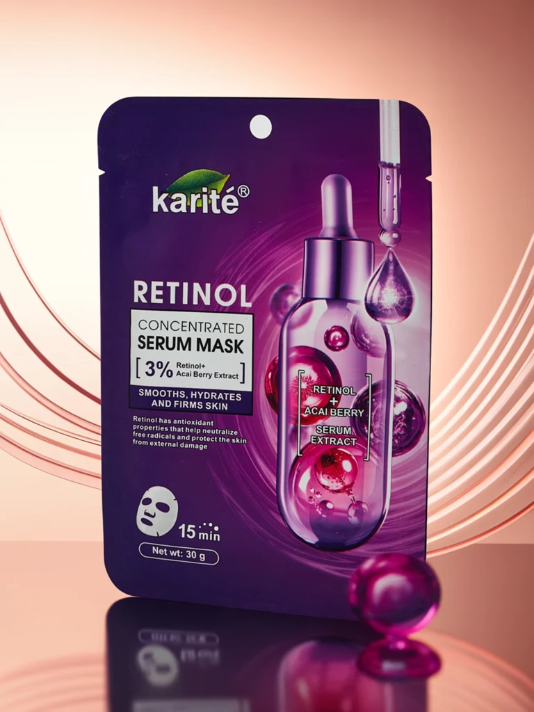 - Masca de față tip șervețel cu ser cu retinol regenerează și netezește intens pielea. Retinolul ajută la reducerea ridurilor, îmbunătățește fermitatea și tonusul pielii, lăsând-o radiantă, moale și întinerită.