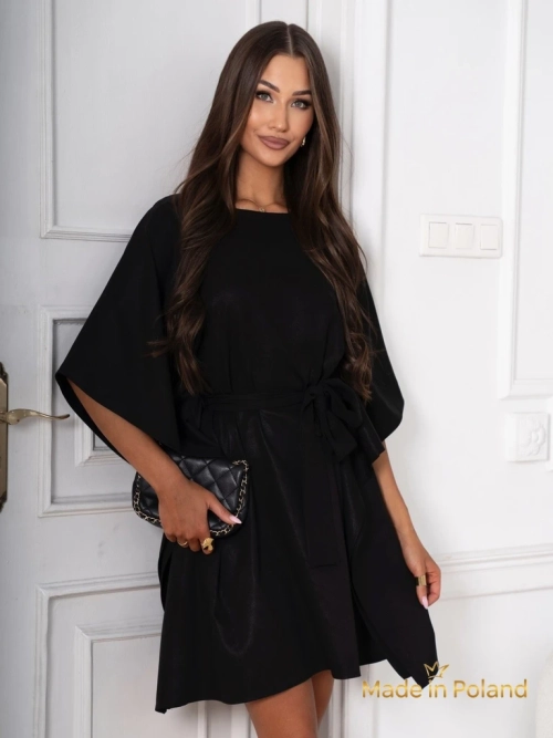 - O rochie scurtă, atemporală pentru femei, este o combinație de eleganță modernă și stil romantic. Mânecile 3/4 și volanele adaugă rochiei lejeritate și o frumusețe unică. Legarea delicată în talie accentuează talia, oferind rochiei o formă subtilă.