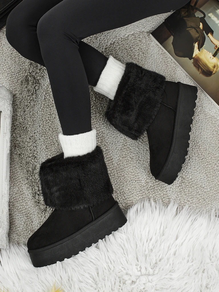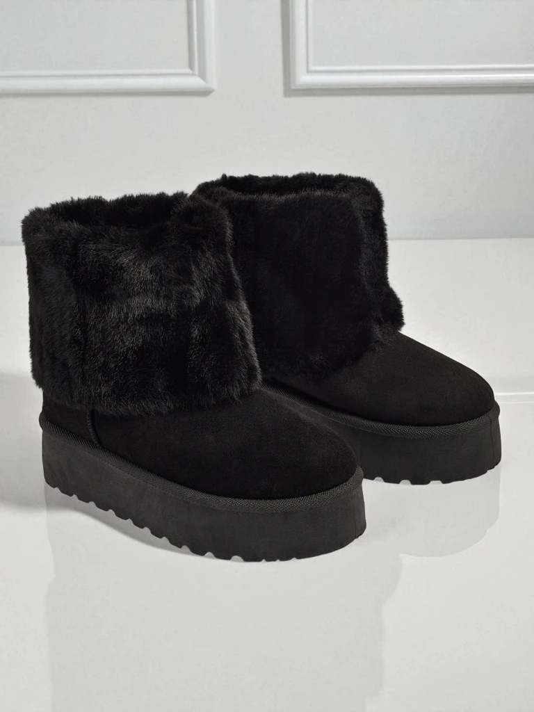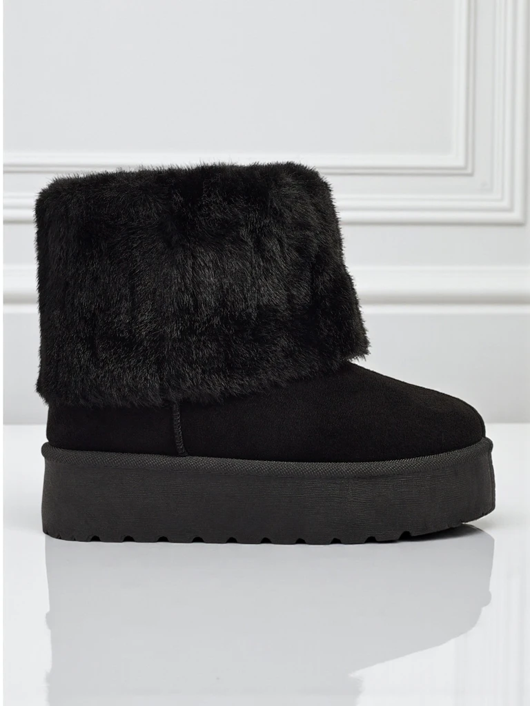 - Ghete de iarnă excelente pentru femei, tip snowboots, cu talpă groasă tip platformă. Partea superioară este confecționată din piele ecologică de tip piele întoarsă, interiorul este izolat cu blană artificială. Bază ideală pentru iarnă!