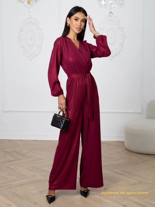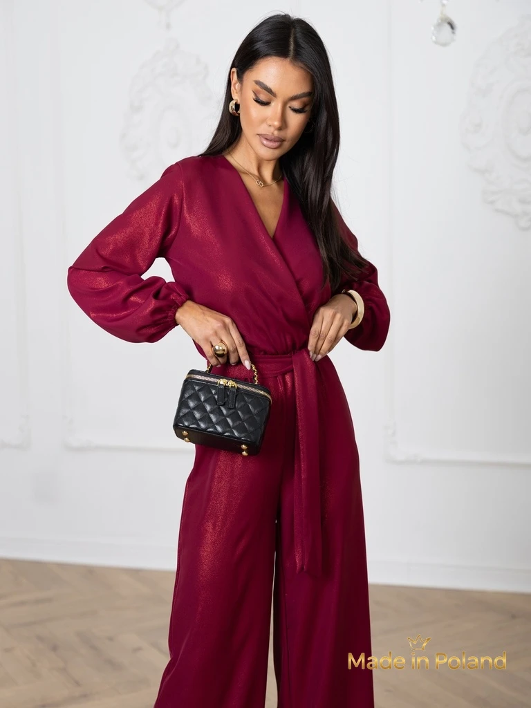 Salopetă de damă 'Valentina' bordo cu mânecă lungă și pantaloni largi