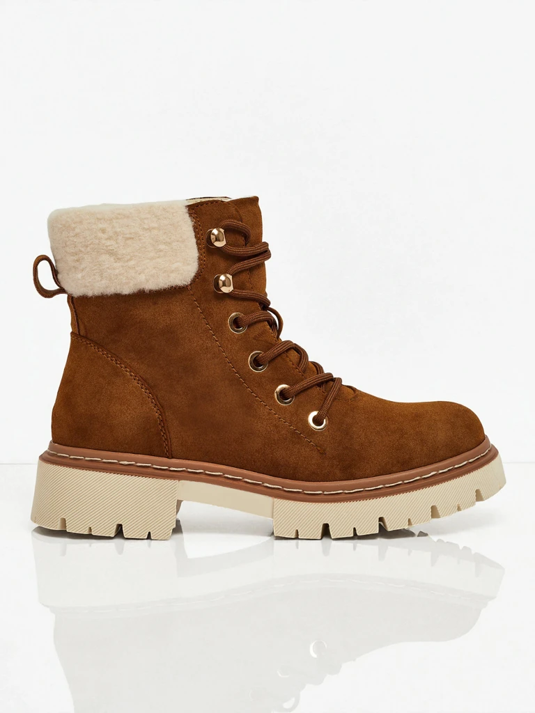 • Traperi de trekking de damă cu fețe șireturate. Materialul este piele ecologică de căprioară. Interiorul este izolat cu o blană delicată. Perfecte pentru iarnă!