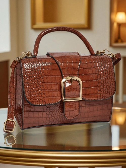 - Geantă mică cu imprimeu, realizată din piele ecologică lăcuită. 1 compartiment, 3 buzunare, fermoar și curea detașabilă, reglabilă. Stil și funcționalitate într-o ediție perfectă.