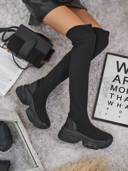 Cizme lungi de damă, slip-on, cu talpă groasă, Ravmora