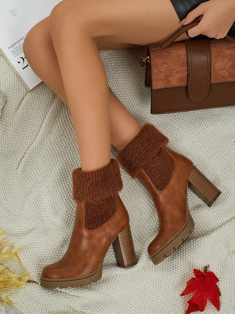 - Botine comode cu toc gros, confecționate din piele ecologică și inserție de tricot. Model slip-on. Model ușor căptușit cu blană. Alegerea ideală pentru toamnă!