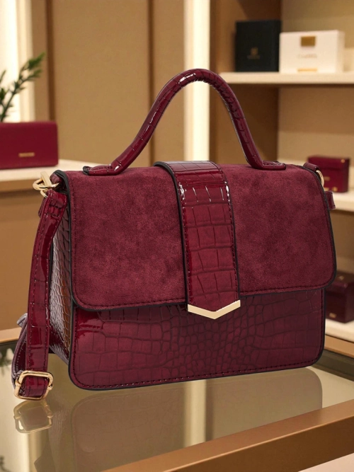 - O geantă mică realizată dintr-o combinație de piele ecologică și piele ecologică lăcuită. 1 compartiment, 3 buzunare, fermoar și o curea detașabilă, reglabilă. Stil și funcționalitate într-o ediție perfectă.