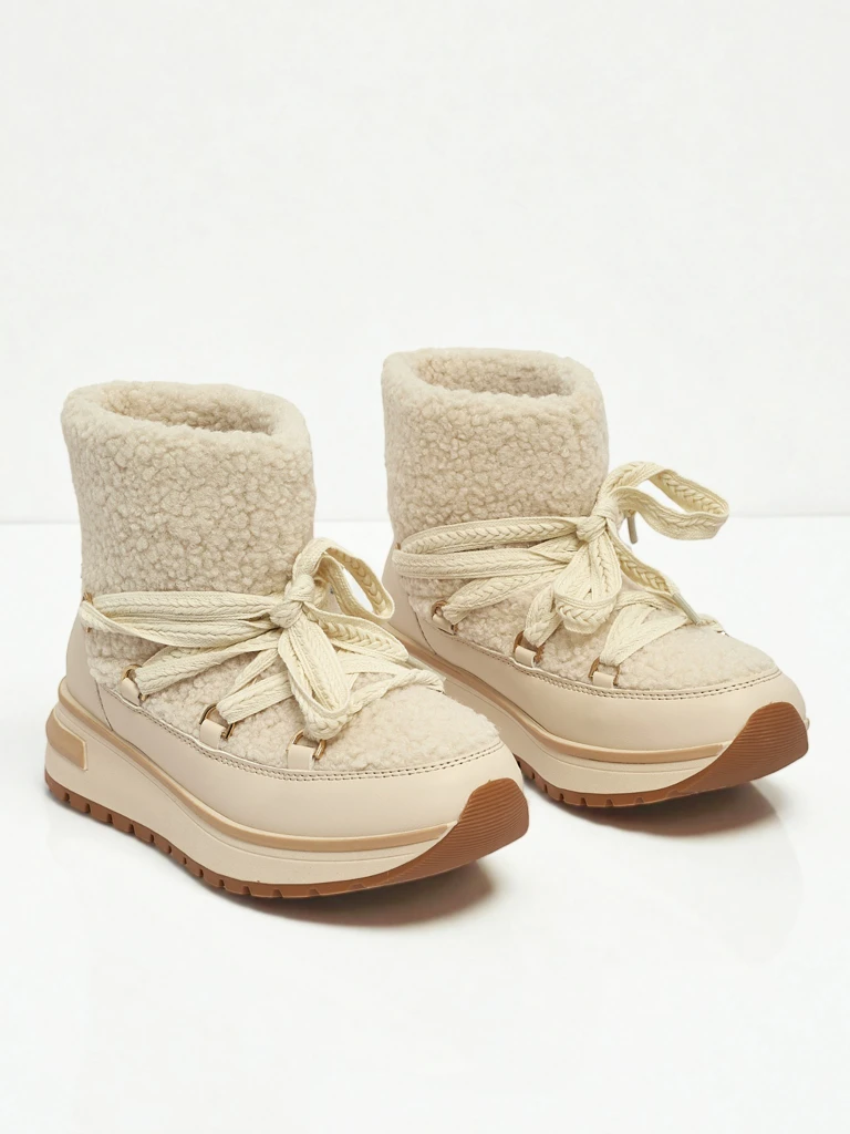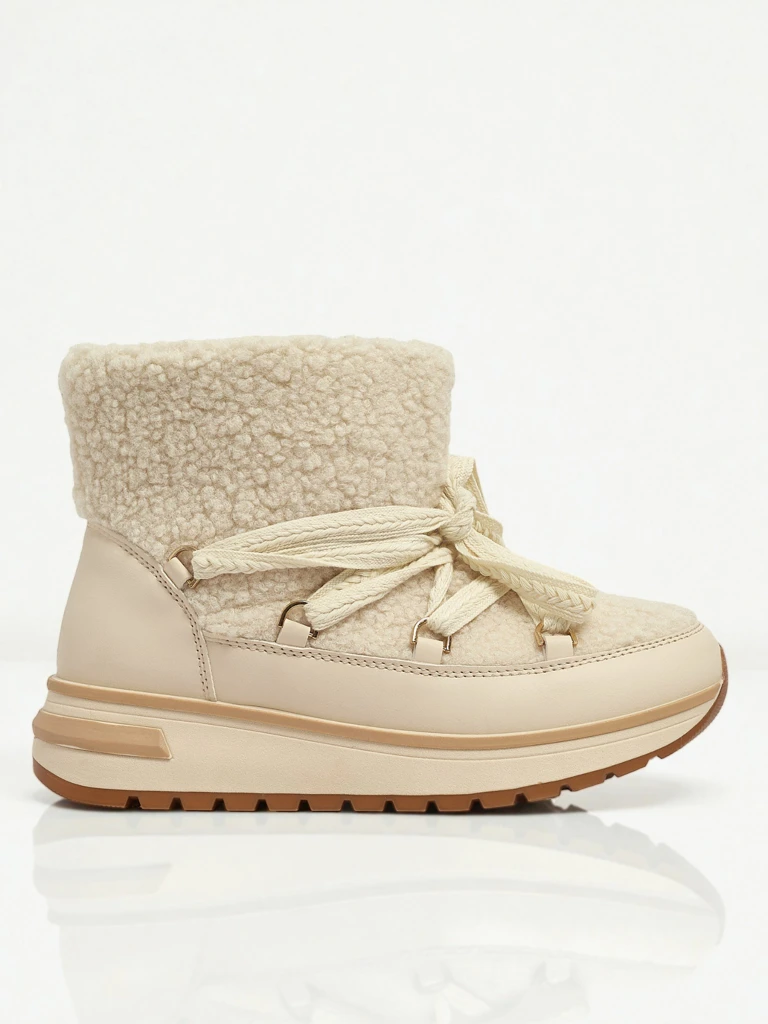 • Botine de iarnă de damă excelente, tip snowboots, cu talpă groasă. Partea superioară este confecționată din piele ecologică întoarsă, interiorul este izolat cu blană artificială. Bază ideală pentru iarnă!