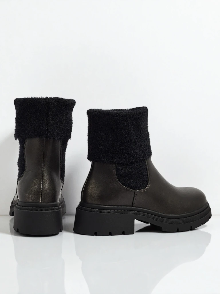 - Botine de damă slip-on cu blană pe partea superioară. Modelul este confecționat din piele ecologică, pe talpă plată. Are izolație tip blană. Confortabile și elegante, perfecte pentru toamnă!