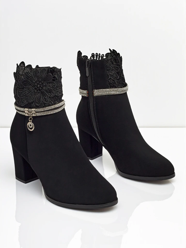 Botine damă eco piele cu toc gros și dantelă Kastrelle