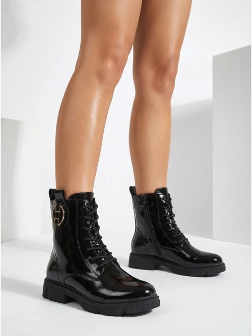 - Botki tip workeri de damă sunt încălțăminte unică, ce combină stilul și confortul. Confecționate din piele ecologică lăcuită, căptușite cu blană delicată. Model cu șireturi și închidere cu fermoar. Talpa mai groasă adaugă confort la fiecare pas.