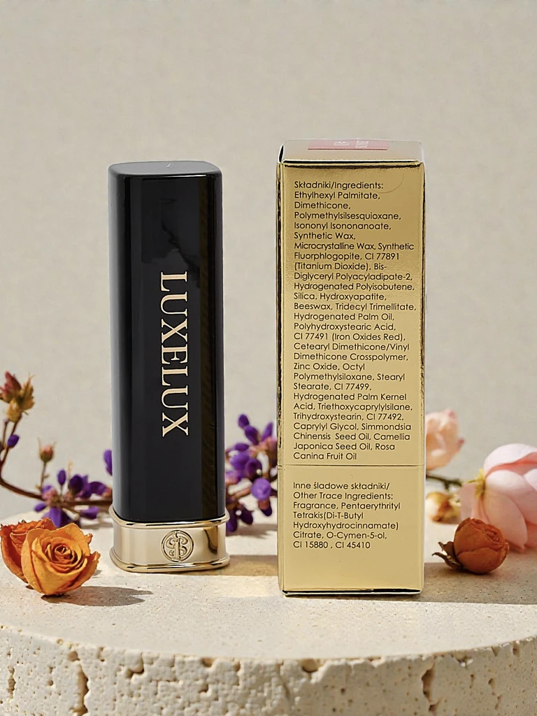 Fabricat din ingrediente de înaltă calitate, rujul Luxelux asigură confort la purtare și îngrijire pentru buze. Formula sa a fost creată pentru a hidrata și hrăni, oferind în același timp un finisaj mat. Durabilitatea produsului cosmetic înseamnă că rămâne pe buze mult timp, ceea ce este important în utilizarea de zi cu zi. Atenția la detalii în execuție garantează un efect final excelent.