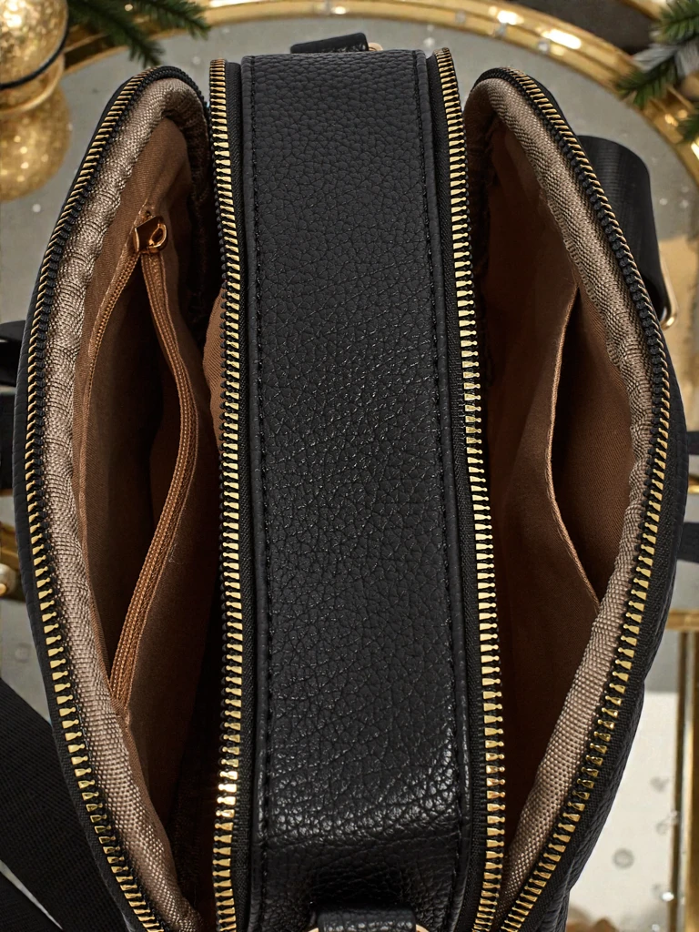 - O geantă mică realizată din piele ecologică. 2 compartimente, 2 buzunare, fermoar și curea reglabilă. Stil și funcționalitate într-o ediție perfectă.