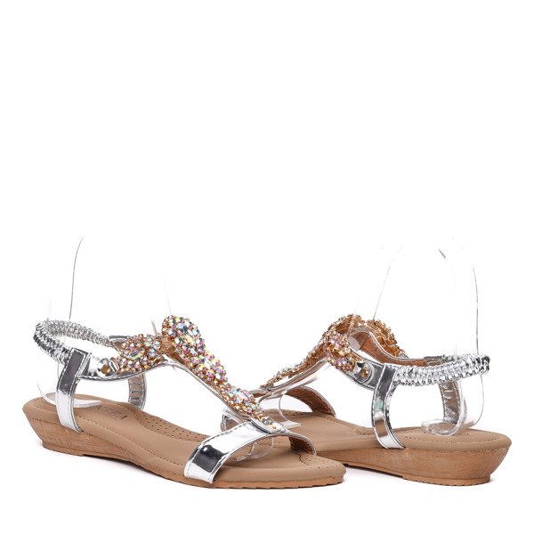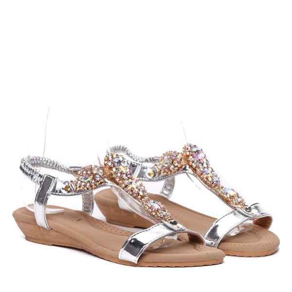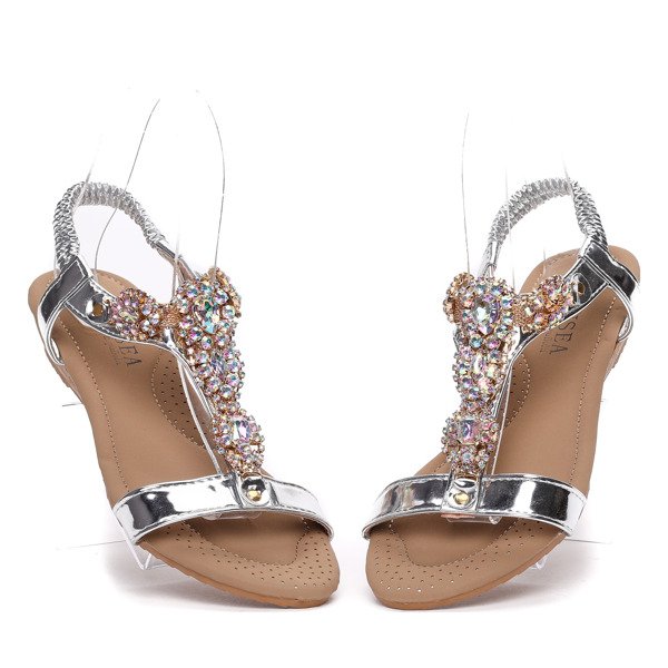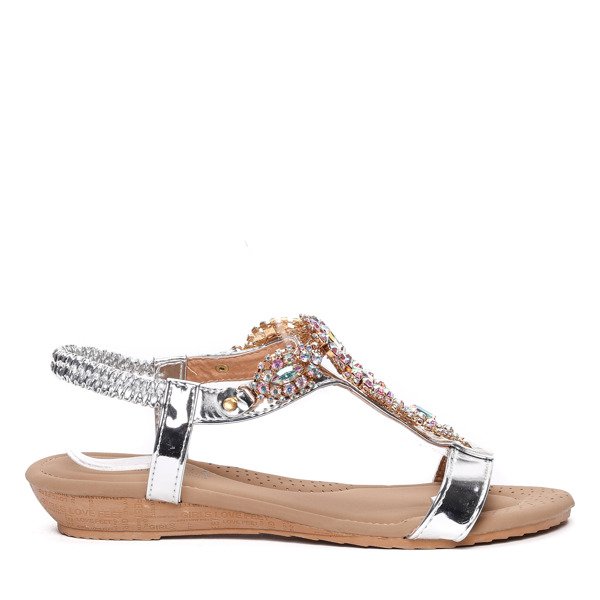 • Wygodne sandały wykonane ze skóry ekologicznej. Model wsuwany, nie posiada zapięcia. Na paseczku ozdobne kryształki. Obuwie idealnie nada się na co dzień.