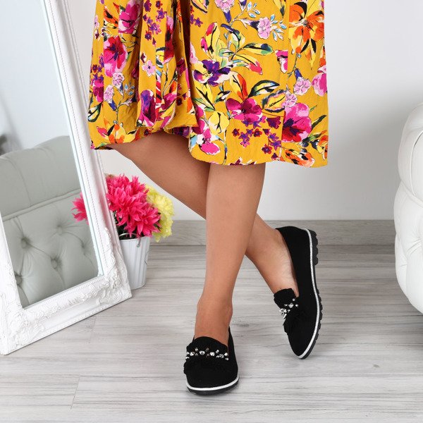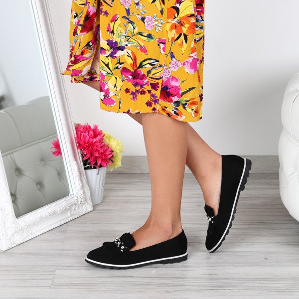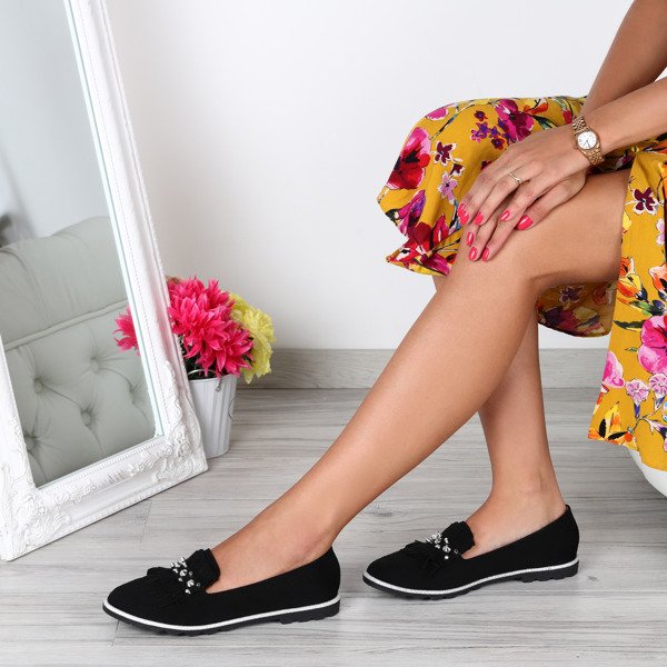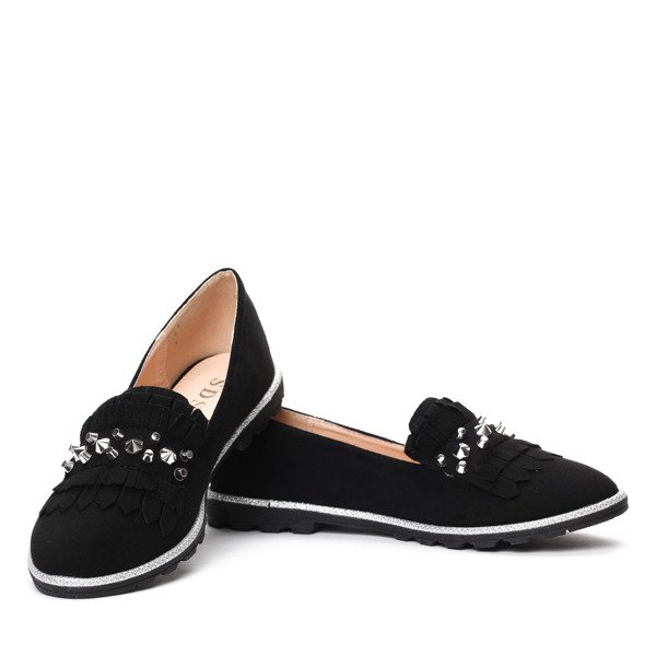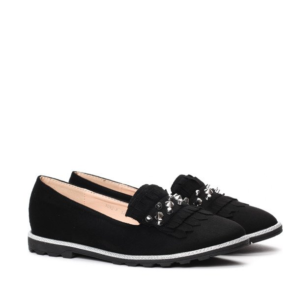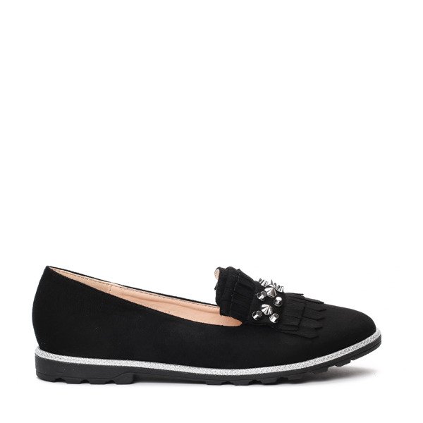 Czarne mokasyny z frędzlami i ćwiekami - Obuwie