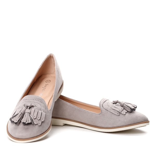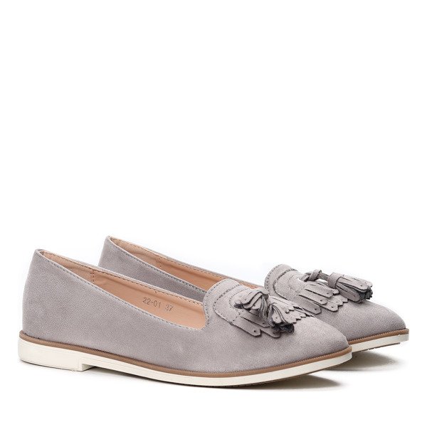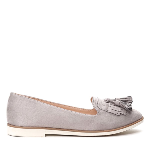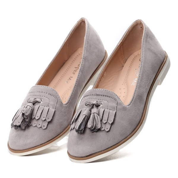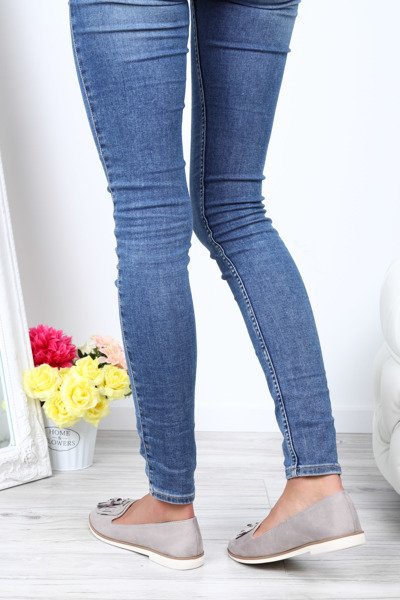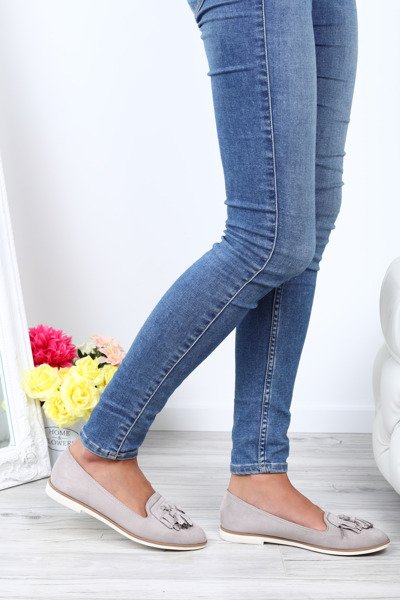 Szare mokasyny z frędzelkami Ellie- Obuwie