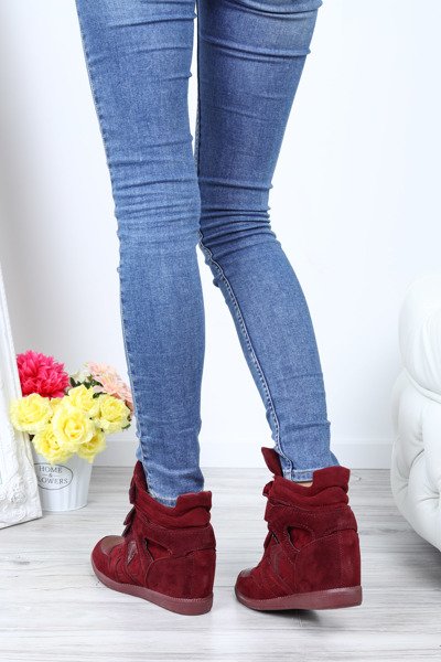 Bordowe sneakersy na krytym koturnie Jana- Obuwie