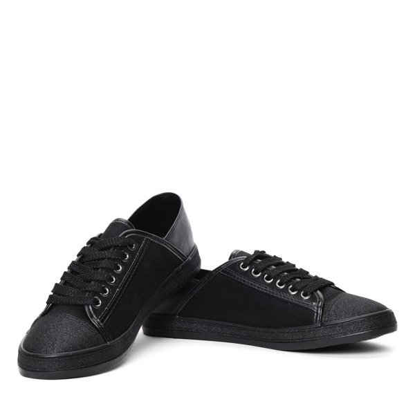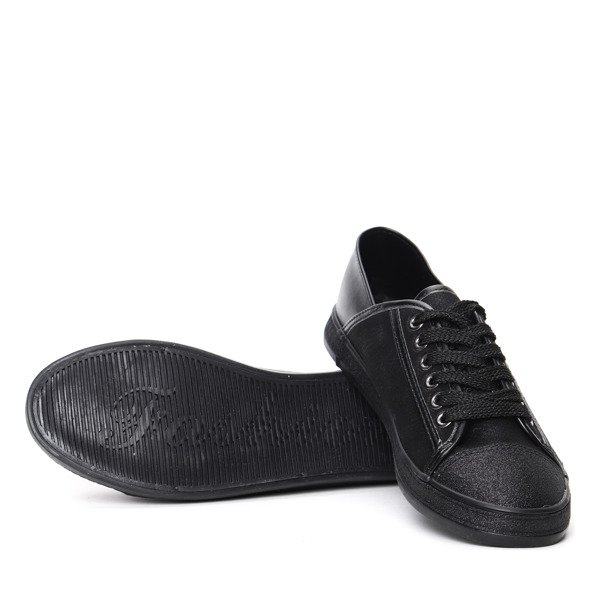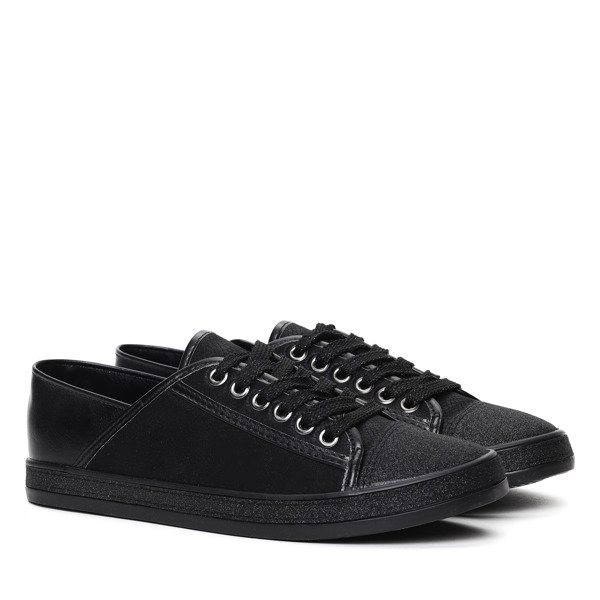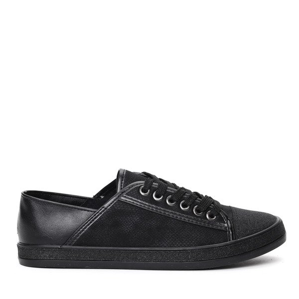 - Dziewczęce trampki wykonane z eko zamszu oraz częściowo z ekologicznej skóry. Nosek i podeszwa zdobione brokatem. Cholewka wiązana. Idealne buty do szkoły!