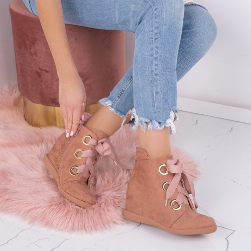 Różowe sneakersy na krytym koturnie wiązane wstążką Andi- Obuwie