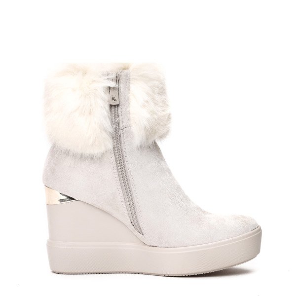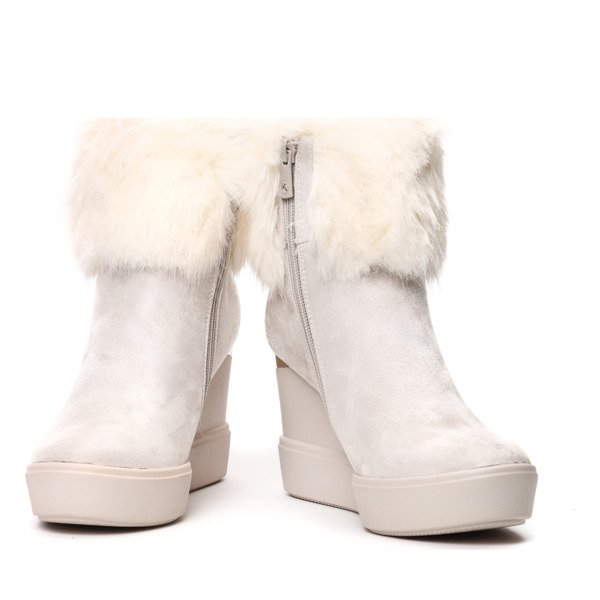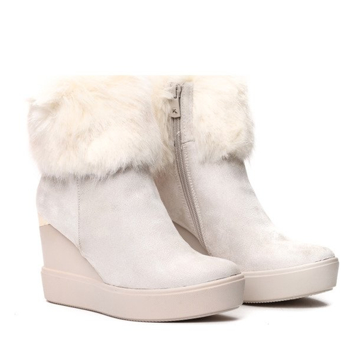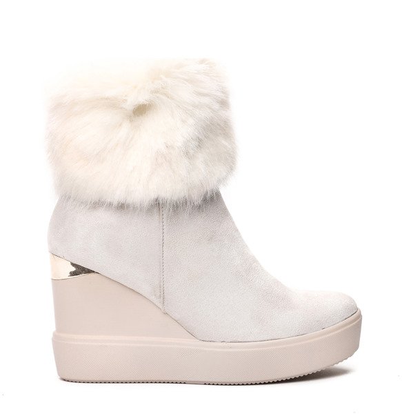 Białe botki na koturnie z kożuszkiem Emilee- Obuwie