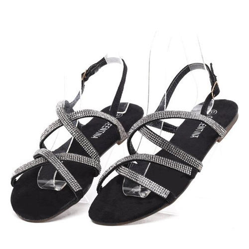 Czarne sandały z cyrkoniami Margarita- Obuwie