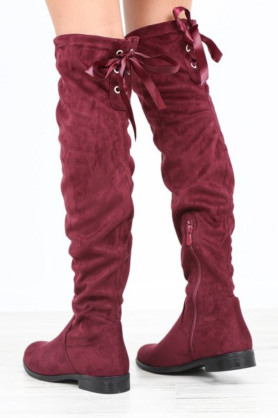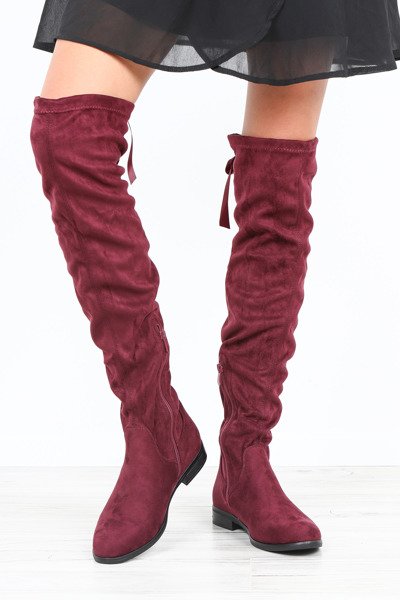 Bordowe kozaki na płaskim obcasie Kalina- Obuwie
