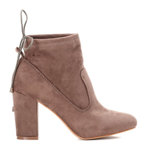 - Eleganckie botki wsuwane na słupku wykonane z ekologicznego zamszu. Z tyłu posiadają sznureczek, którym można regulować szerokość górnej części cholewki. W środku delikatne ocieplenie w formie futerka. Idealne dla kobiet ceniących sobie klasę i wygodę!