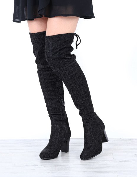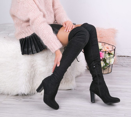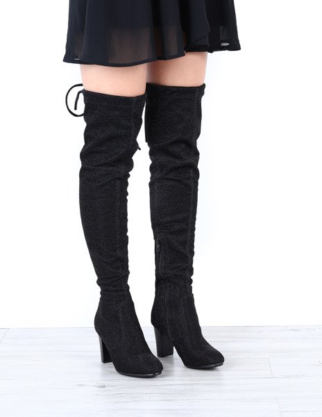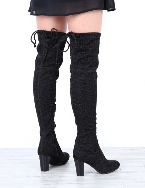 Czarne kozaki na słupku wykończone srebrną, błyszczącą nitką Hannah - Obuwie