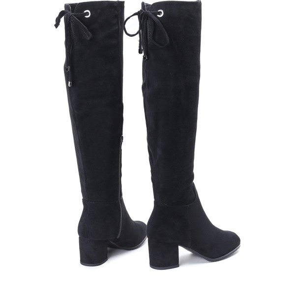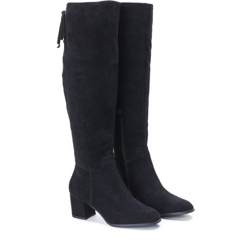 - Wyjątkowo ciepłe kozaki na słupku wykonane ze skóry ekologicznej zamszowej. W środku posiadają ocieplenie w formie futerka. Idealnie się sprawdzą na chłodniejsze dni!