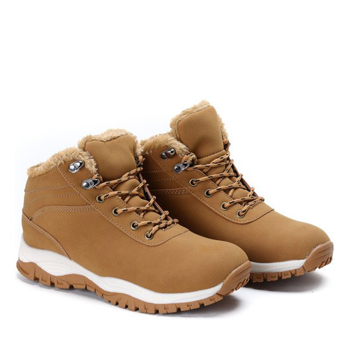 Ocieplane, damskie traperki w kolorze camelowym Reta- Obuwie