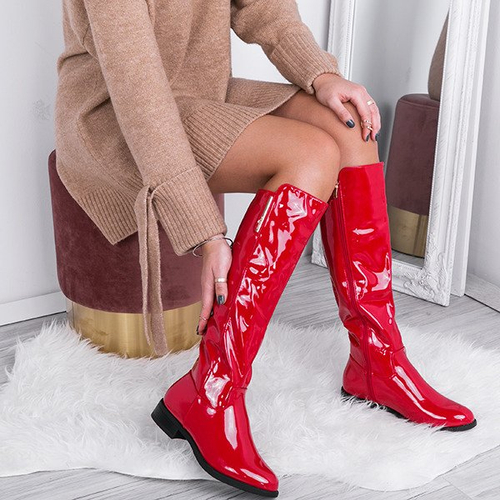 Czerwone, lakierowane kozaki Wild Thoughts- Obuwie