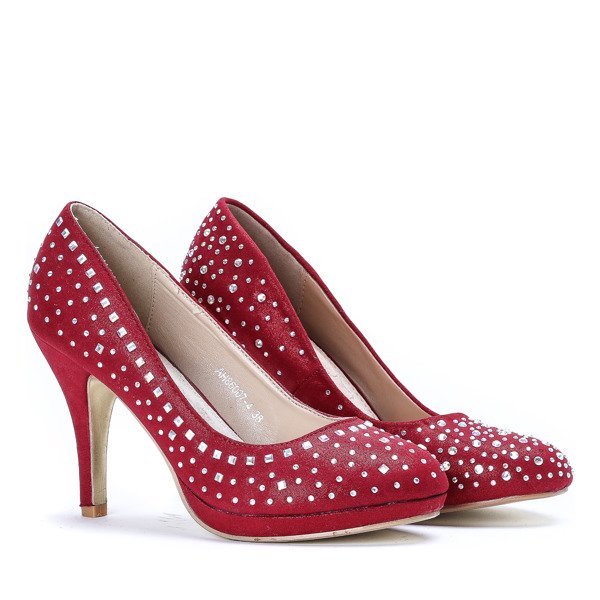 Czerwone szpilki z cyrkoniami Asja - Obuwie