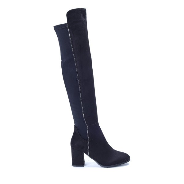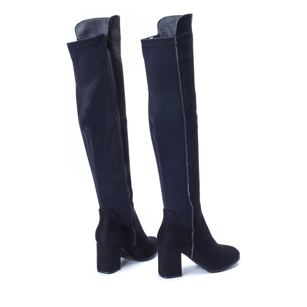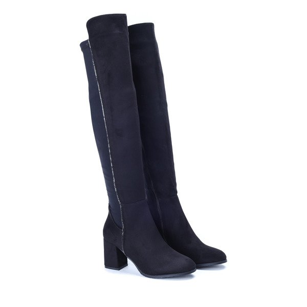Czarne, długie kozaki z cyrkoniami Meg- Obuwie