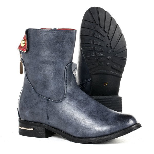 Granatowe botki workery z suwakami Daseryve - Obuwie