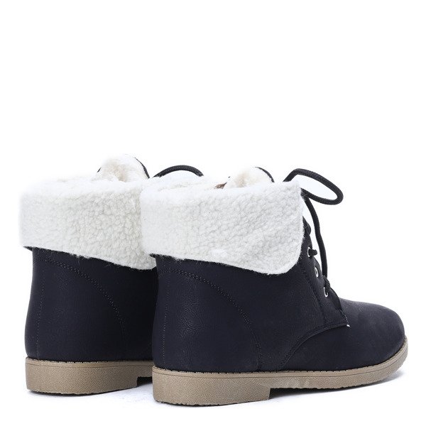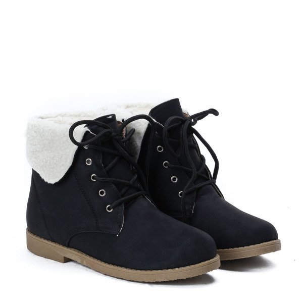 - Śliczne trzewiki z kożuszkiem, wiązane na sznurowadła. Płaska podeszwa z niskim obcasem idealnie nada się na co dzień. Klasyczny, minimalistyczny fason sprawdzi się u każdej z Pań. W środku ocieplenie grubym futerkiem.